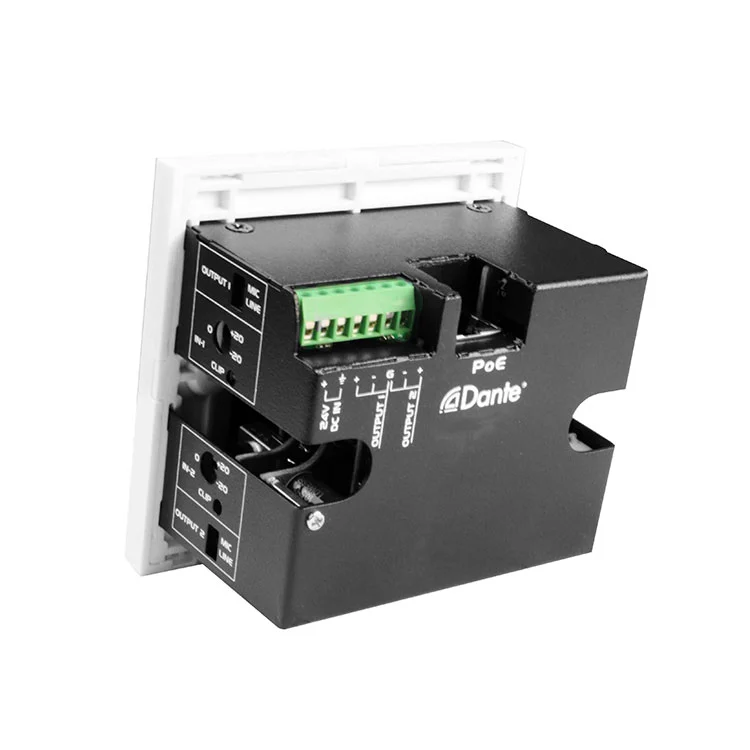 2CH DANTE इंटरफ़ेस 2 MIC/LINE INPUTS X 2 आउटपुट इंटरफ़ेस पैनल पेशेवर ऑडियो एप्लिकेशन, जैसे कॉन्फ्रेंस रूम, लाइव साउंड सेटअप, ब्रॉडकास्ट स्टूडियो और स्थापित AV सिस्टम के लिए एकदम सही है, जहां एक कॉम्पैक्ट, रैक-फ्री फॉर्म फैक्टर में विश्वसनीय डांटे-टू-एनालॉग और एनालॉग-टू-डांटे रूपांतरण की आवश्यकता होती है। इसकी दीवार-माउंटेड डिज़ाइन उच्च गुणवत्ता वाले ऑडियो प्रदर्शन को बनाए रखते हुए विभिन्न वातावरणों में स्वच्छ और कुशल एकीकरण के लिए अनुमति देता है।