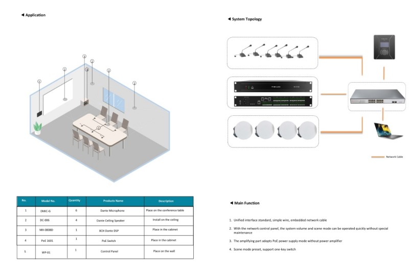 o POE पावर सप्लाई इंटीग्रेशन: डांटे माइक्रोफोन/स्पीकर्स (जैसे Shure MXA सीरीज़) के सिंगल-केबल पावर सप्लाई + डेटा ट्रांसमिशन को महसूस करने के लिए POE स्विच के साथ सहयोग करें।